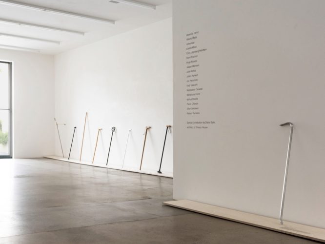 Invited to contribute to the exhibition of ‘Walking Stick and Canes’ at the studio designed Emeco House in Venice, CA. From the exhibition text – ‘As a child i remember an ongoing game with my grandfather who would make a quick move to swat us with his cane should we accidentally, or more often purposefully, pass within range. I like the idea that something which might represent weakness or vulnerability could at the same time present itself as a symbol of strength. It is imagined best suited for formal events or meetings where respect would be welcomed but not guaranteed.’ More on the exhibition which began at the Triennale Museum in Milano.